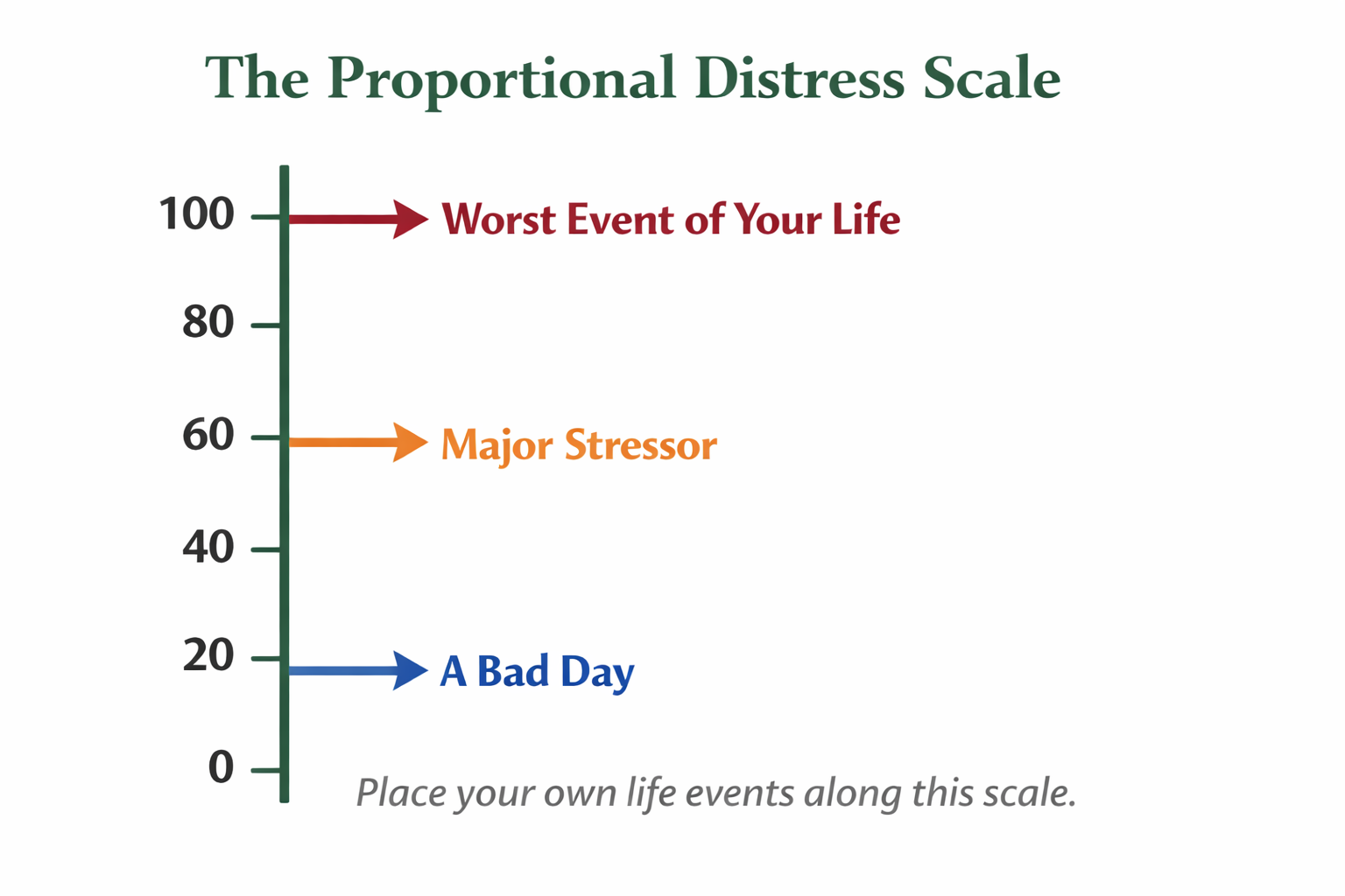 “Great question. For Chicken Little, everything was a 100. He had no perspective. Everything was a disaster. He ends up alone. This scale is most specifically for the people who rate every problem, every aggravation as 100. We use this to teach them perspective.”